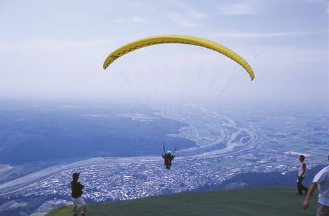 ツアーには、ユニバーサルツーリズムアドバイザーの渕山知弘さんが同行。参加者はスカイ獅子吼(ししく)のパラグライダーを体験したり白山比咩(しらやまひめ)神社を参拝したりして、障害がある人も楽しめる旅について意見を述べ合いました。