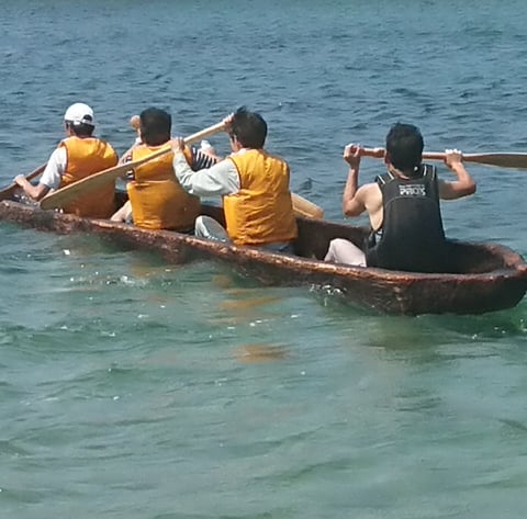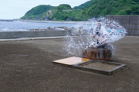 能登町真脇遺跡縄文館による丸木舟の進水試験が8月5日に姫漁港で行われました。縄文人のように石斧を使い、杉の大木を削ること3カ月あまり。仕上げた舟は長さおよそ7.4メートル。夏の海にプカリと浮かび、子どもと大人が櫂を漕いで港内を巡りました。きらめく海と縄文人の航海体験。新しい夏のプログラムの誕生でしょうか。