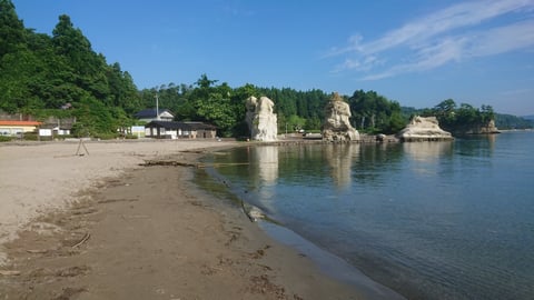 能登町では、二つの海水浴場をご利用いただけます。浜の色が五色に変化すると言われる、波穏やかな五色ケ浜海水浴場はご家族に人気です。消波ブロックが波を穏やかにし、白砂が弧を描く美しい入り江になっています。