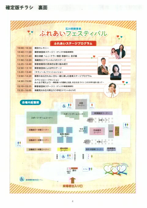 今年も石川県障害者ふれあいフェスティバルを開催します。今年はフェスティバル30回記念企画として、演劇ヘレン・ケラー物語を行います。視覚・聴覚・発話の三重苦を乗り越え、日本や世界に希望を与えた生涯を演じます。金沢や北陸での活動も描き、障害がある方々の環境改善に尽くした姿を伝えます。手話パフォーマンス映像を背景に歌う海蔵亮太さん、障害があるミュージシャン・藤井幹人さんと黒崎菜保子さん、県立ろう学校の皆さんによる音楽ステージや、この30年を振り返るトークセッション、ファッションショーなどを行います。